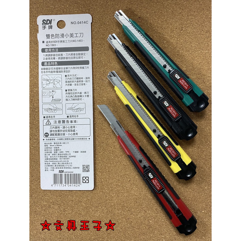 手牌SDI 雙色防滑小美工刀(自動鎖定設計)/NO.0414C/左右手均均適用