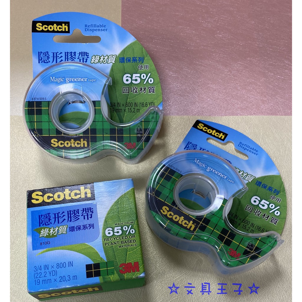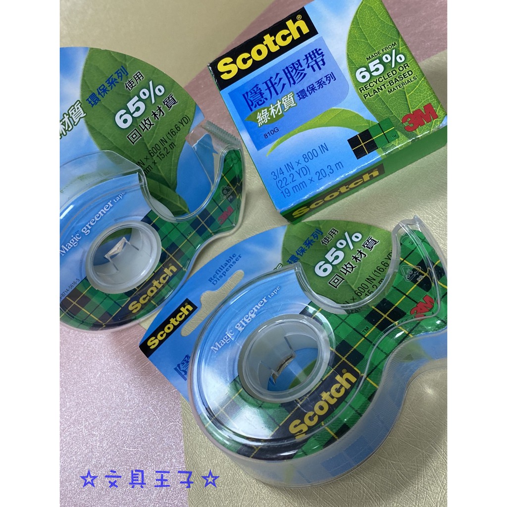 3M 810G 綠材質隱形膠帶/附台 19mm可手撕.可書寫.影印不留痕跡