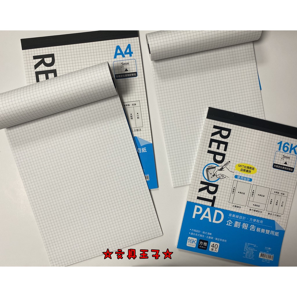 16K、13K/A4 企劃報告易撕雙用紙(方格)/企劃紙.報告用紙.單線本