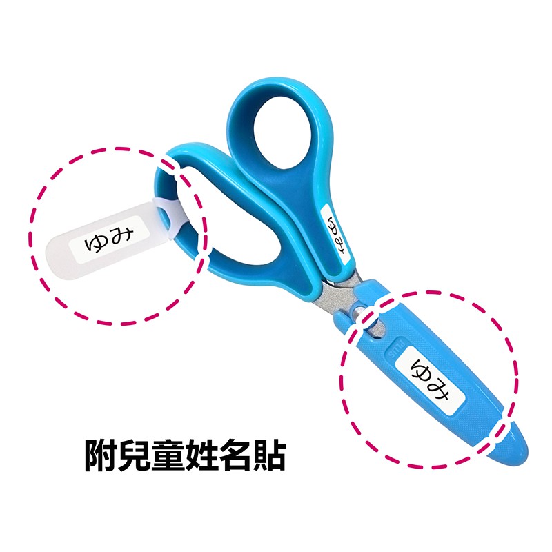 ◆安全的圓形尖端,附安全收納蓋,以及姓名貼紙和掛牌。