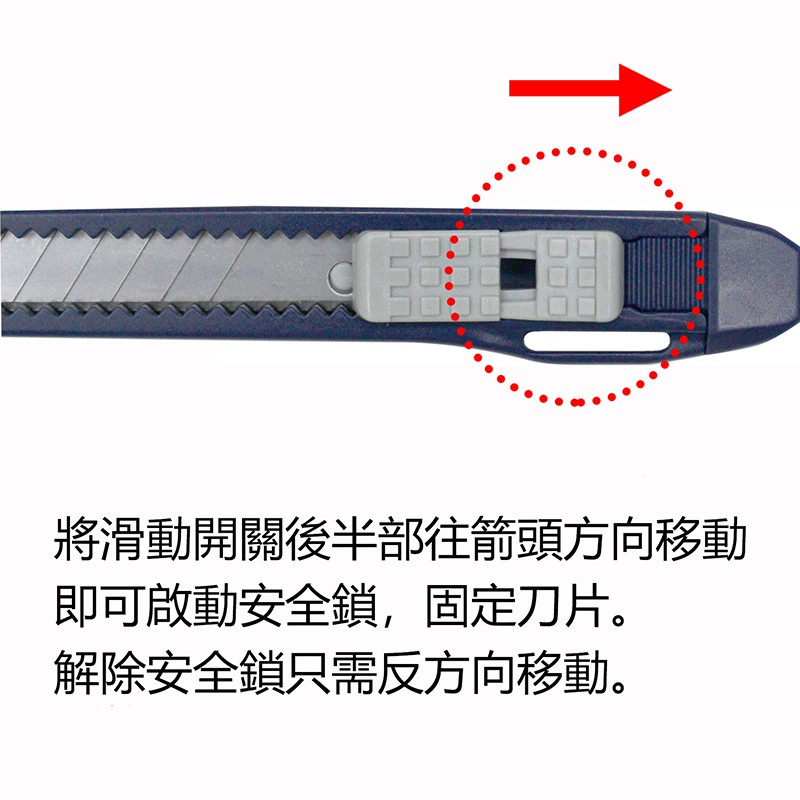 ◆安全鎖裝置可將刀片緊緊固定(刀片收入本體鎖住後,可防止刀片滑出。