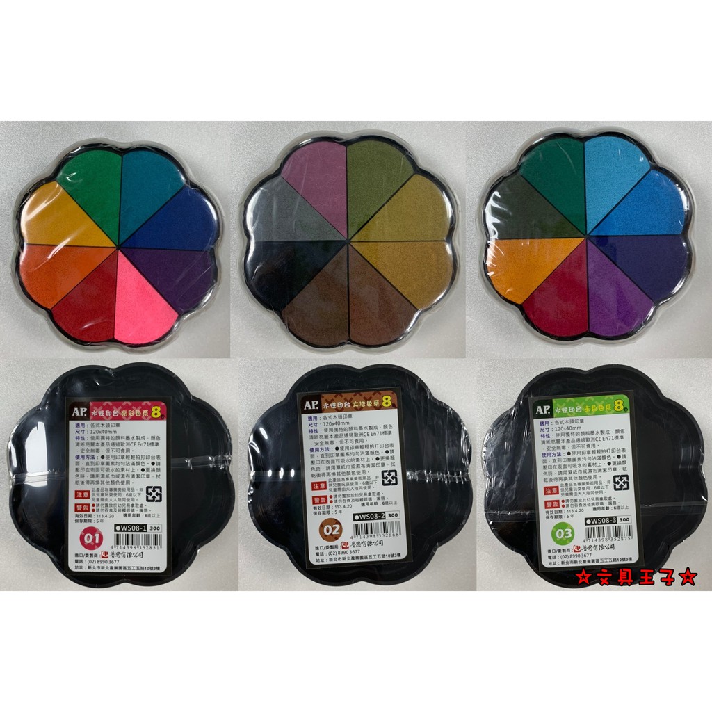 AP 8色水性印台.多色印台.WS08 (亮彩色系.大地色系.主色系)
