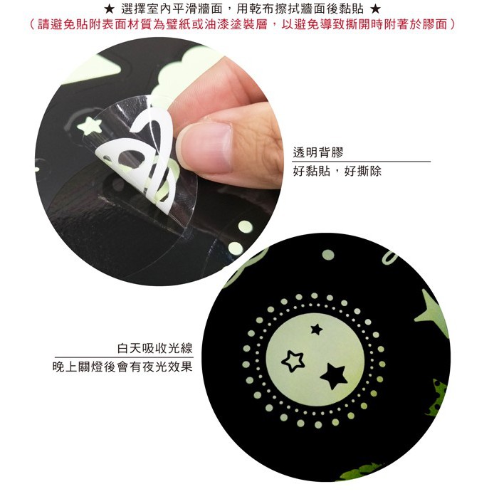 ◆白天吸收光線,晚上關燈後會有夜光效果。