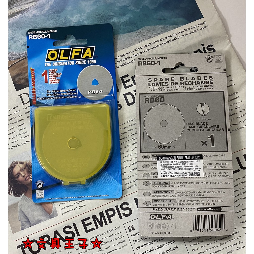◆產地:日本 ■60m/m拼(割)布刀刀片RB60-1型