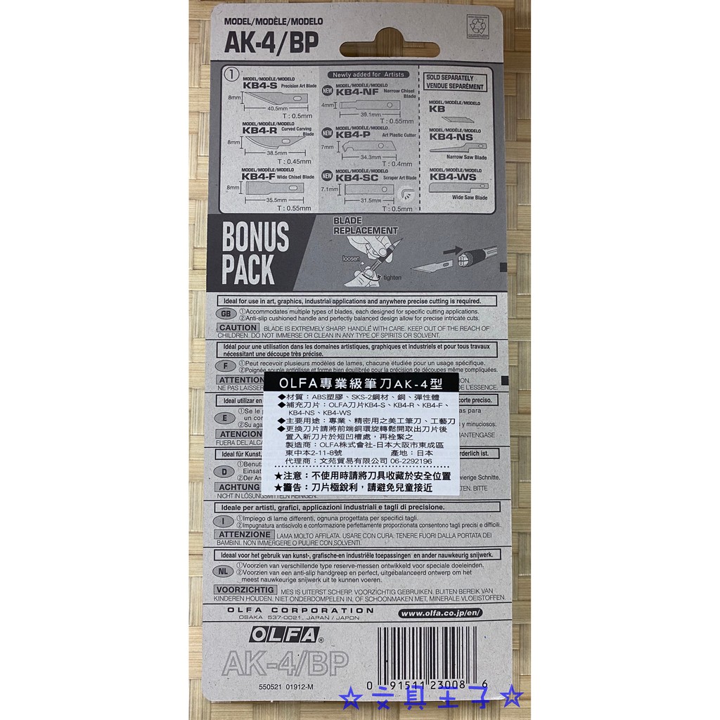 OLFA 筆刀 AK-1.AK-4/筆刀替換刀片KB型.