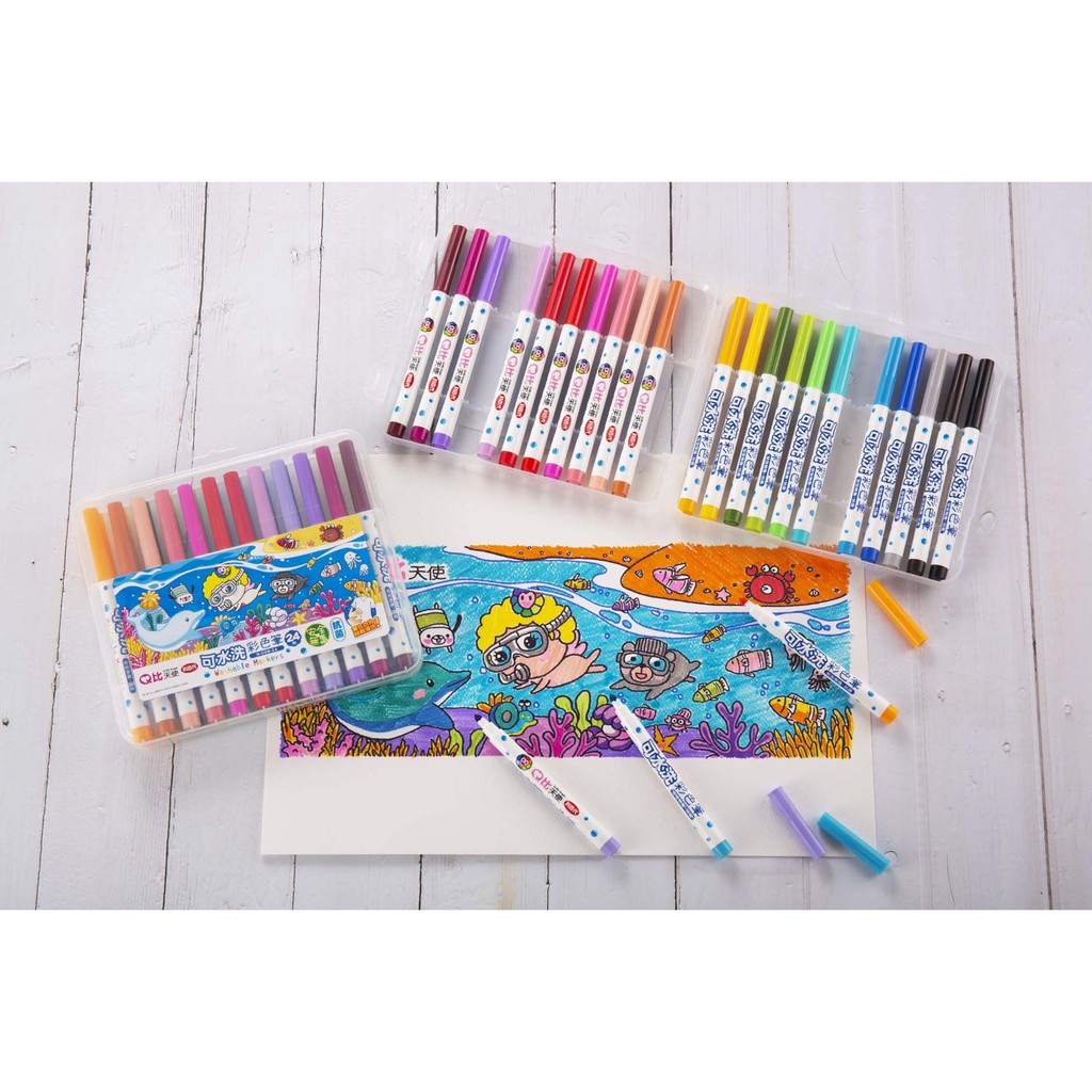 ◆Q比天使與好朋友漫遊在海底世界中,完美創作需要24色Q比天使彩色筆來完成。