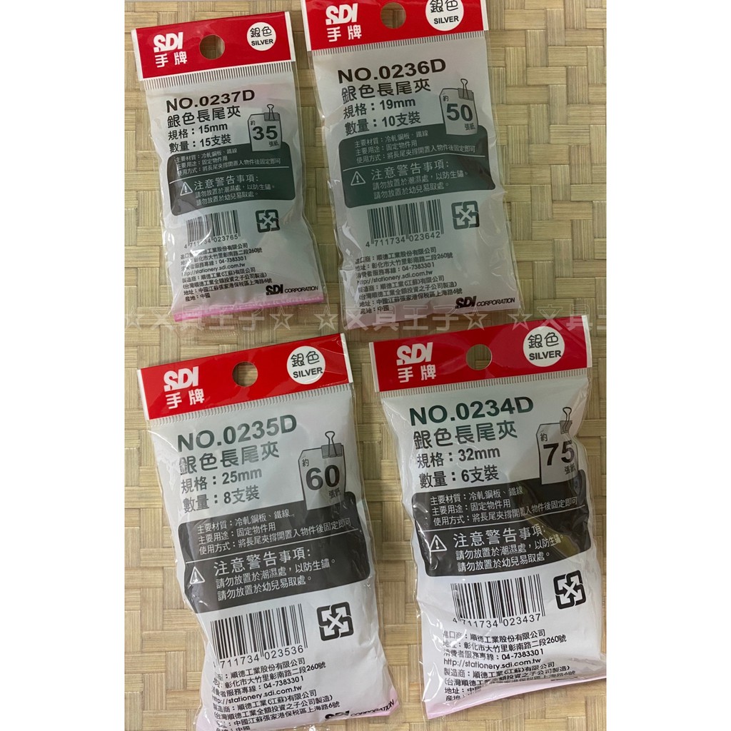 手牌SDI 銀色長尾夾隨手包/15mm/19mm/25mm/32mm/OPP袋裝