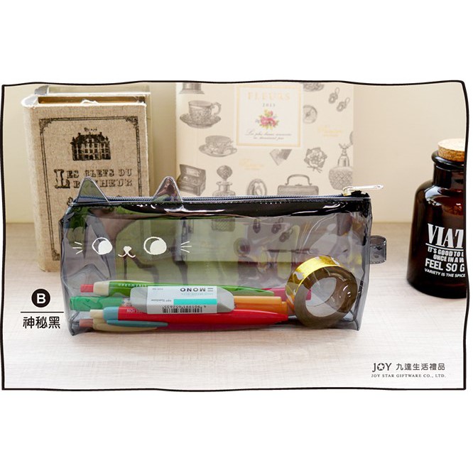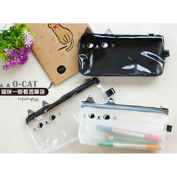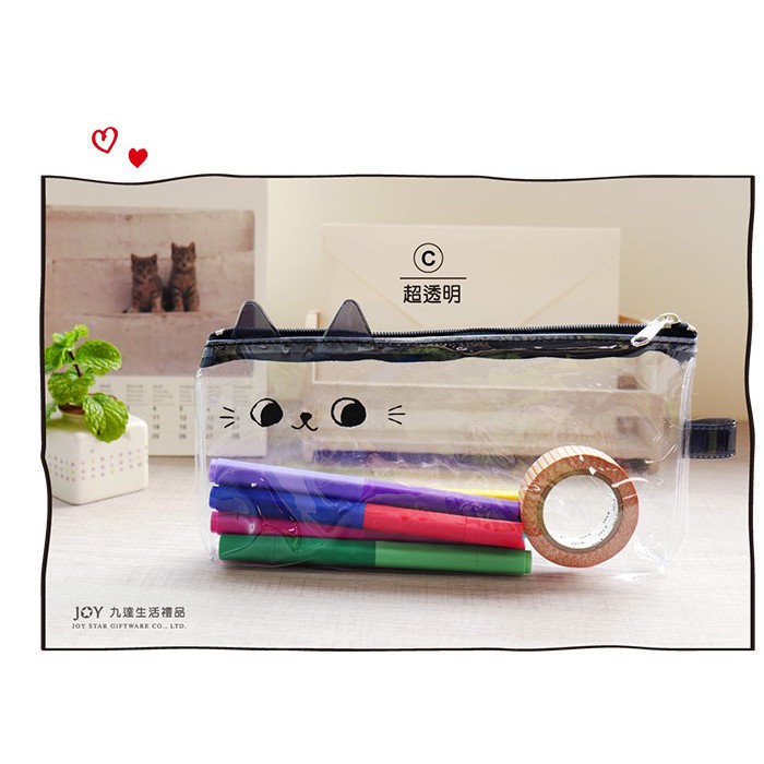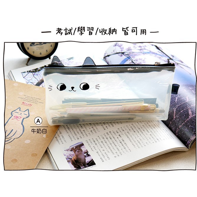貓咪 一眼看透筆袋.透明考試筆袋.PVC透明筆袋.扁型透明收納包 JPC-108