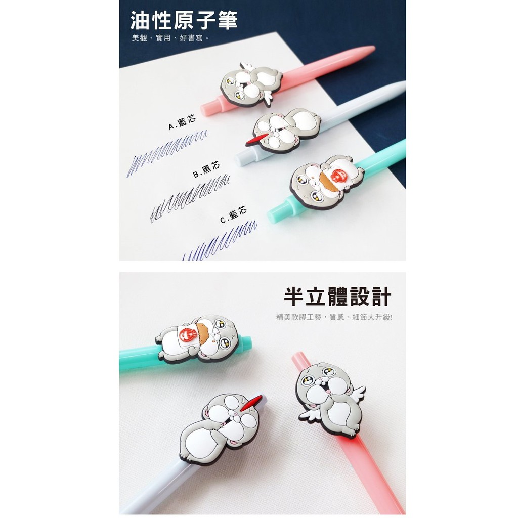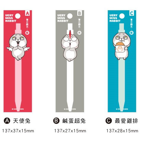 ◆款式:A.天使兔(藍芯)、B.鹹蛋超兔(黑芯)、C.最愛雞排(藍芯)。