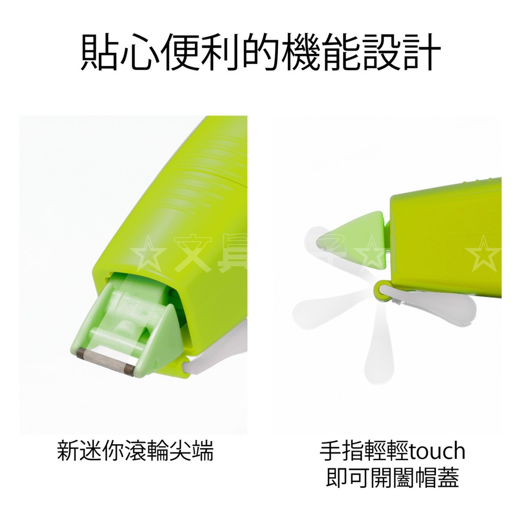 ◆筆端超輕滾輪設計,握筆時角度傾斜修正帶也能和紙面貼緊,不會有浮字剝落問題。