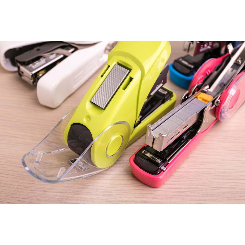 ◆開窗設計針槽可裝100支釘書針,剩餘針數一目了然,裝針時可180°打開,並有防釘書針偏移設計。