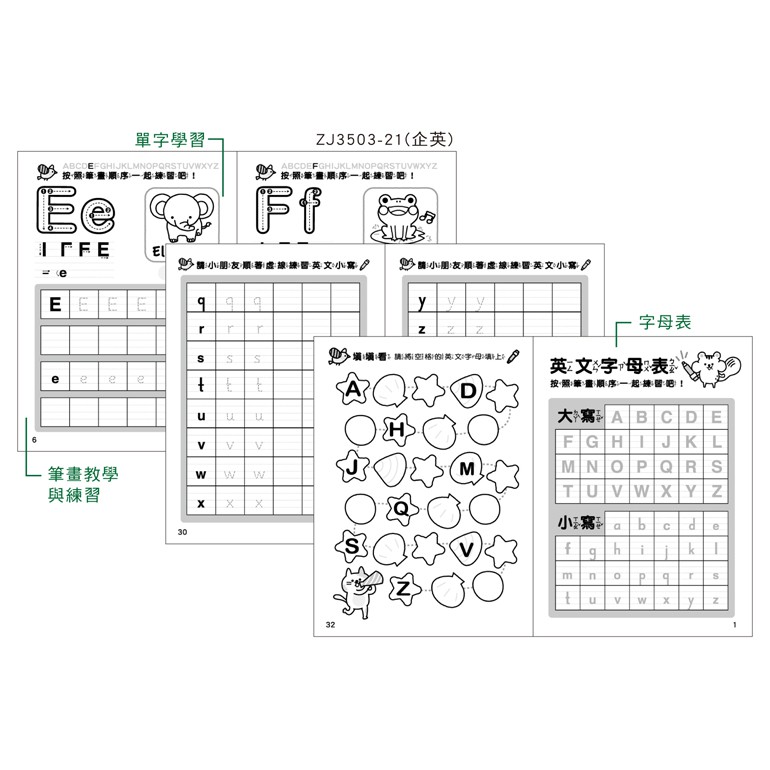 16K 數字、字母、注音練習本.運筆練習本 ZJ3503