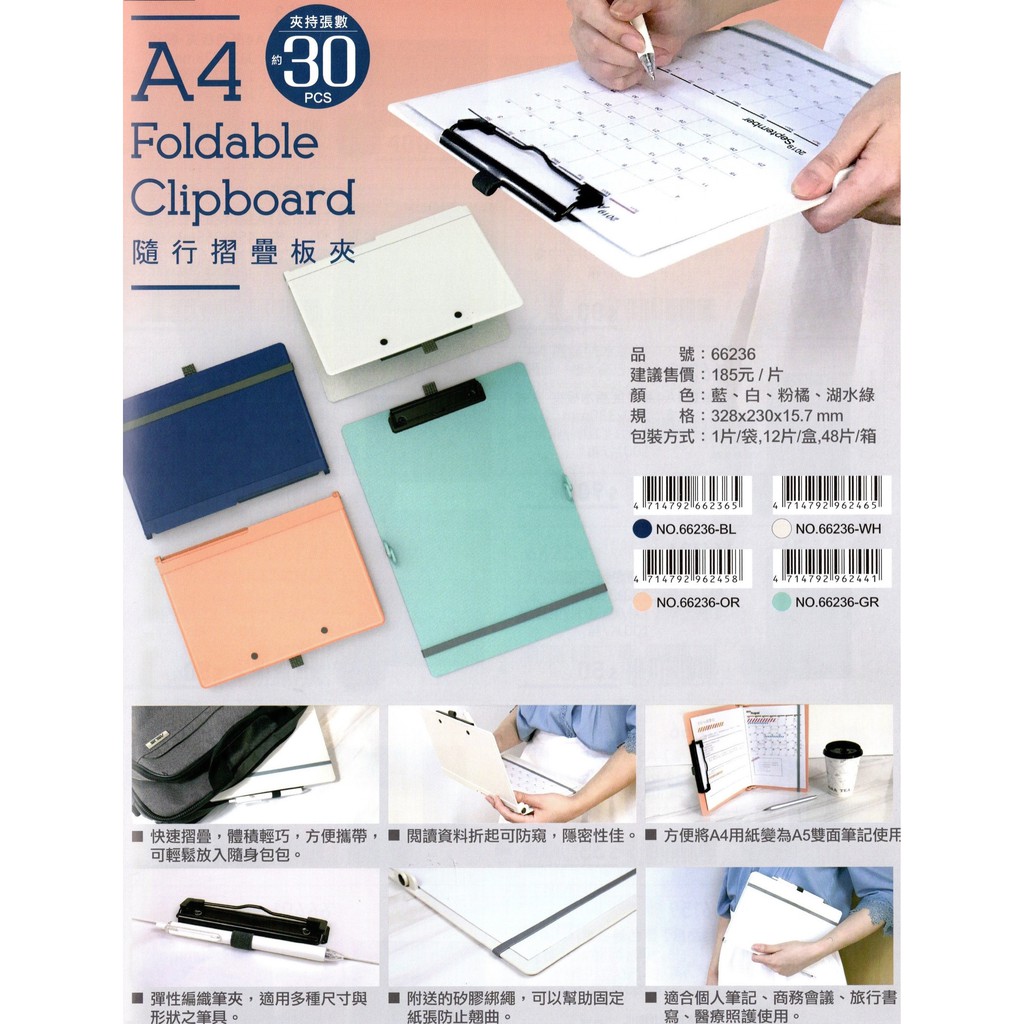 ABEL A4 隨行折疉板夾.攜帶型板夾.隨身板夾.書寫板.手寫板 NO. 66236