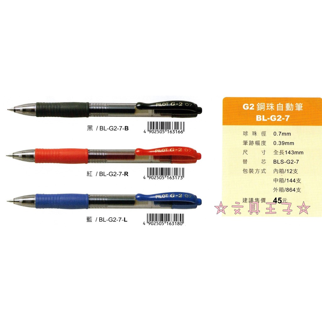 PILOT G-2 0.7mm鋼珠自動筆 BL-G2-7/ 專用替芯BLS-G2-7
