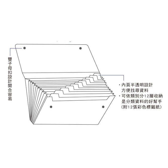 ◆12層A4橫式規格,可依類別分層收納(附標籤紙)。