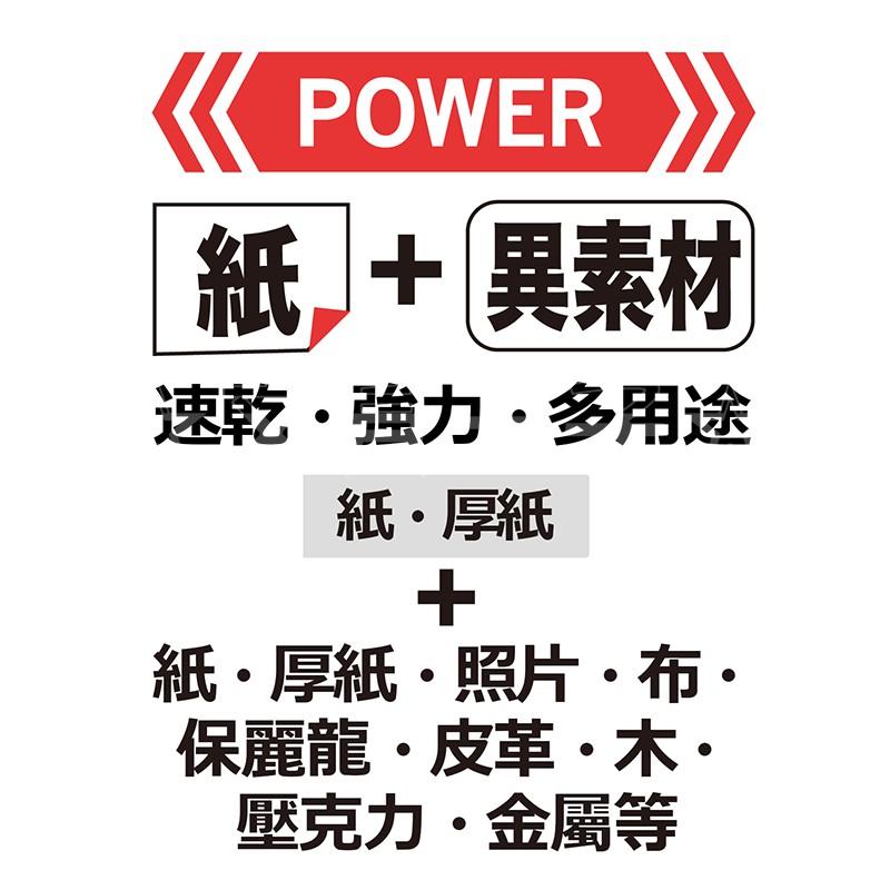 ◆可黏貼於紙、厚紙、照片、布料、保麗龍、皮革、木質、壓克力、金屬等。