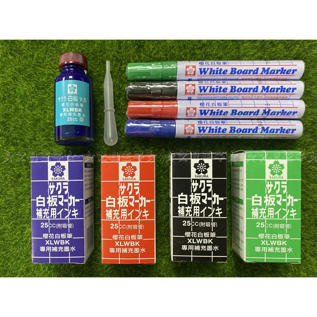 ◆特色:色彩飽和鮮艷,易擦拭,適用於櫻花白板筆的補充墨水。