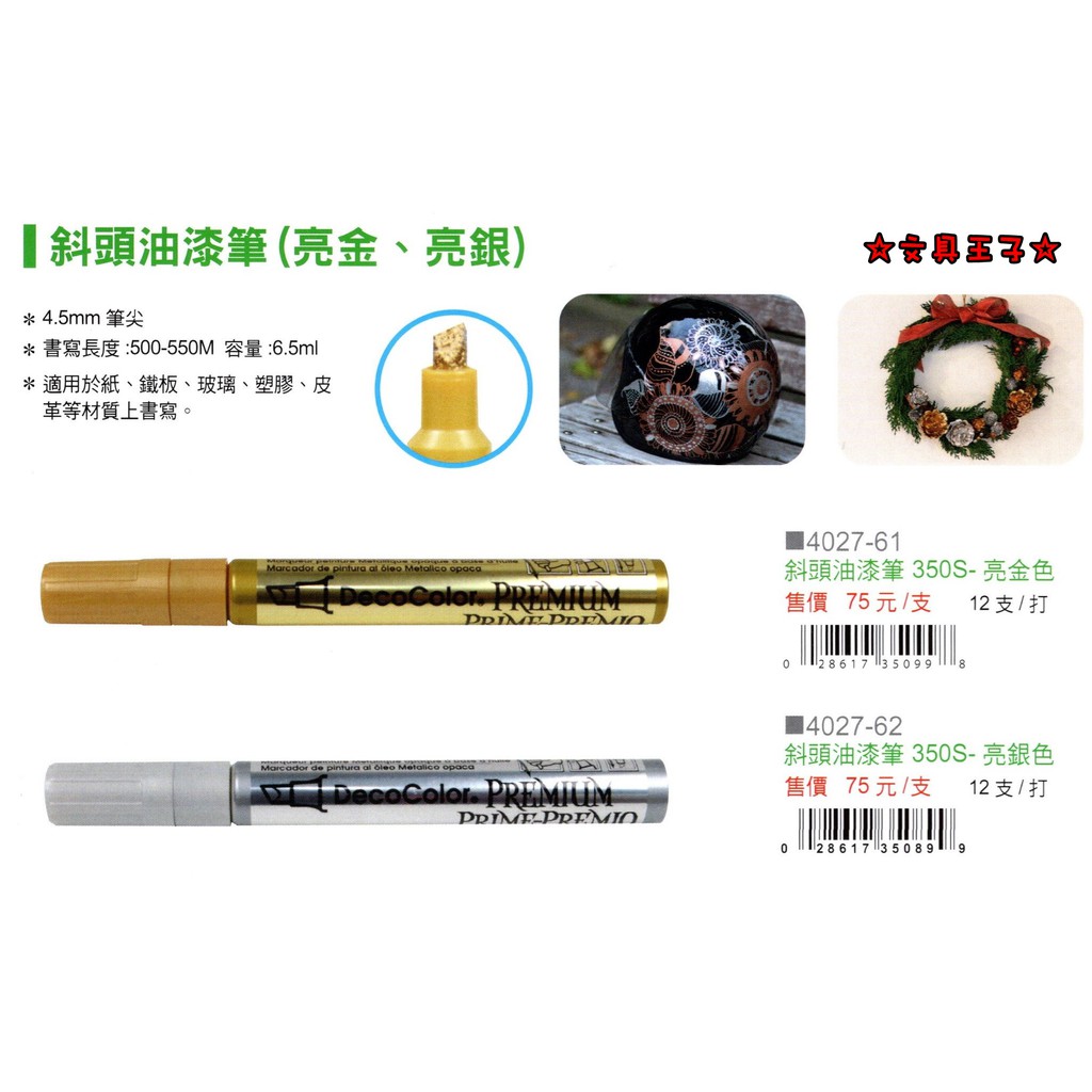 UCHIDA 斜頭油漆筆 350S (亮金.亮銀)