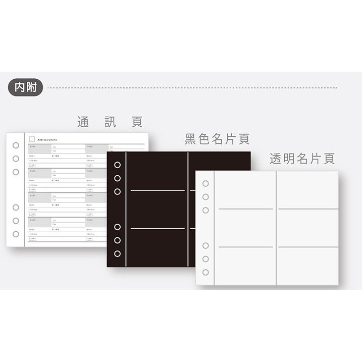 ◆內含通訊頁、黑色名片頁、、透明名片頁。