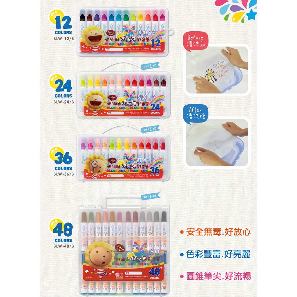 雄獅 奶油獅 可水洗 彩色筆/BLW-12.24.36.48