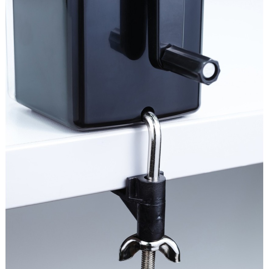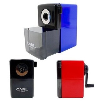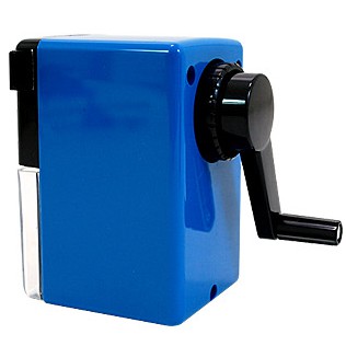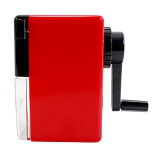 ◆鉛筆機固定,壓住2個夾子,將鉛筆插入削筆孔,放開夾子持搖桿順時鐘方向運轉到空轉時,即可取出使用。