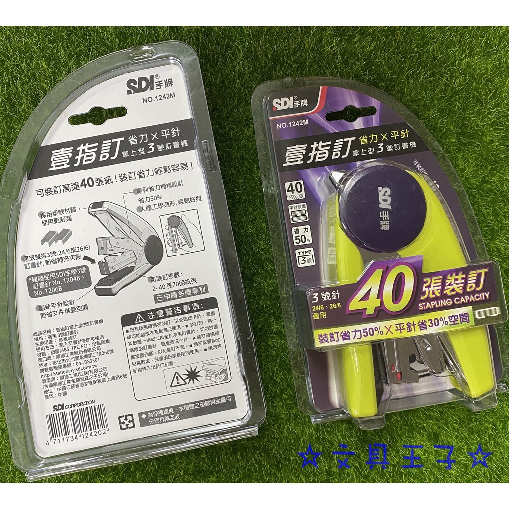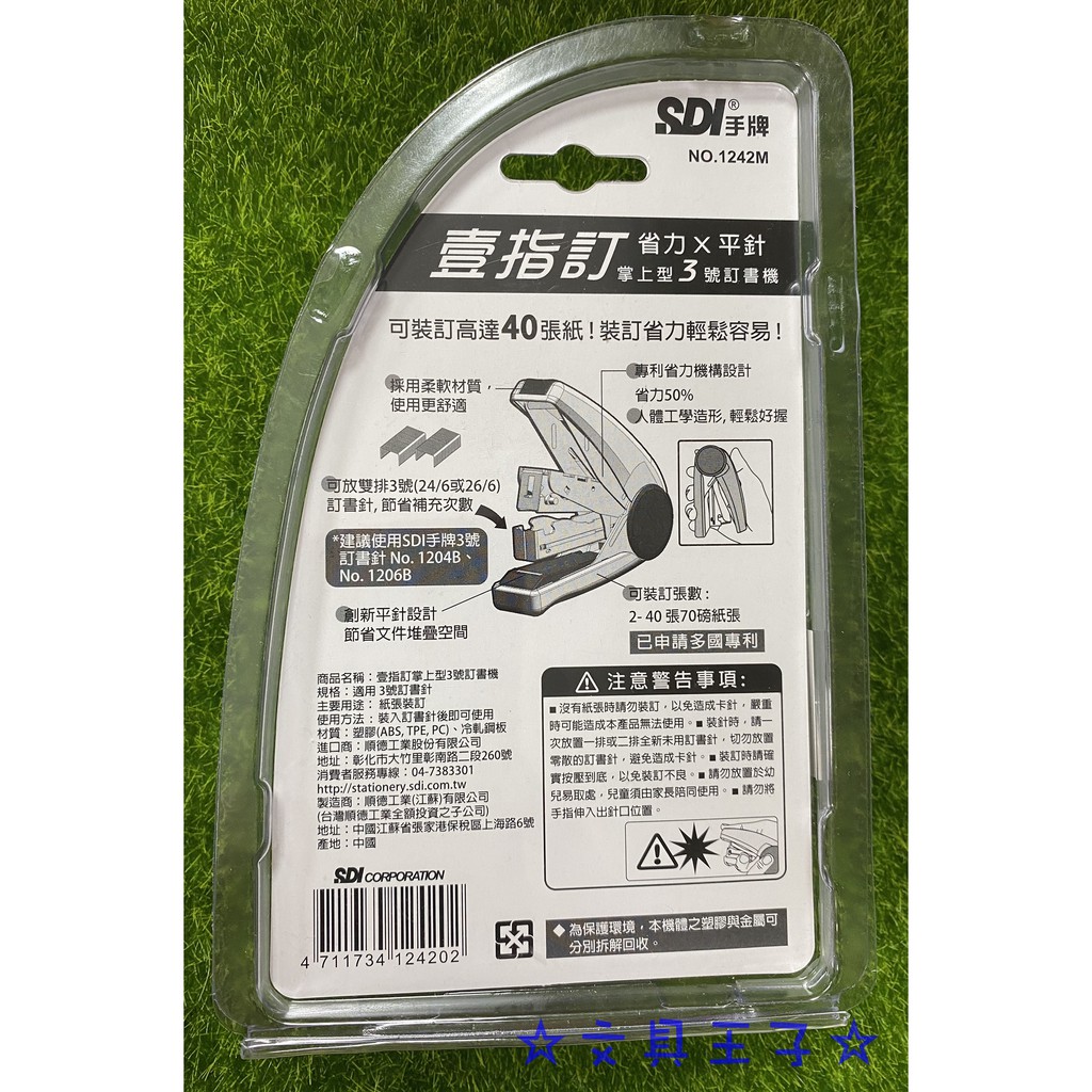 手牌SDI 壹指訂掌上型3號訂書機 NO.1242M /壹指訂 省力 X 平針