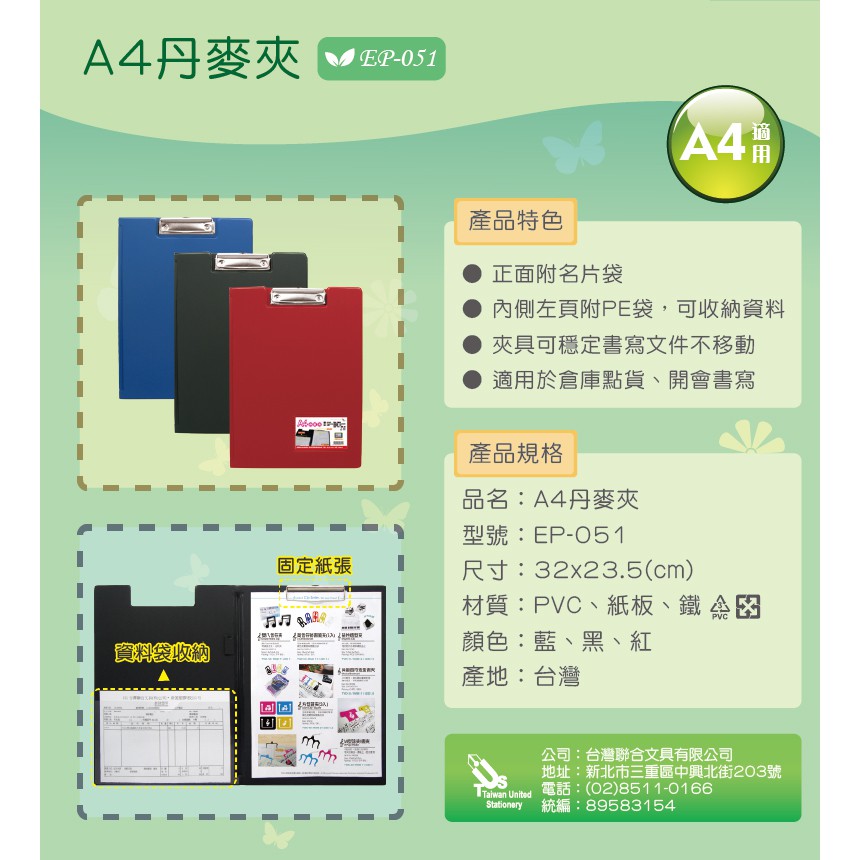 A4/13K 丹麥夾(附名片袋).事務板夾.文書夾.手寫板.書寫板 EP-051