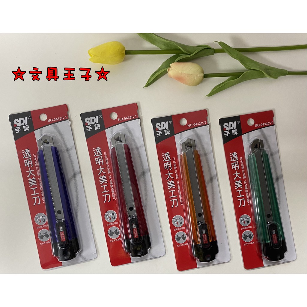 • 手牌SDI 透明大美工刀(自動鎖定設計)/NO.0433C-T/左右手均均適用