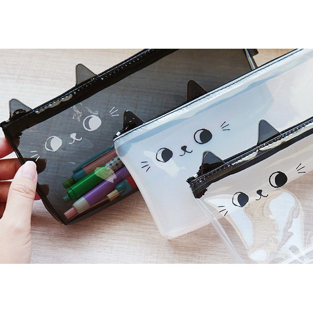 • 貓咪 一眼看透筆袋.透明考試筆袋.PVC透明筆袋.扁型透明收納包 JPC-108