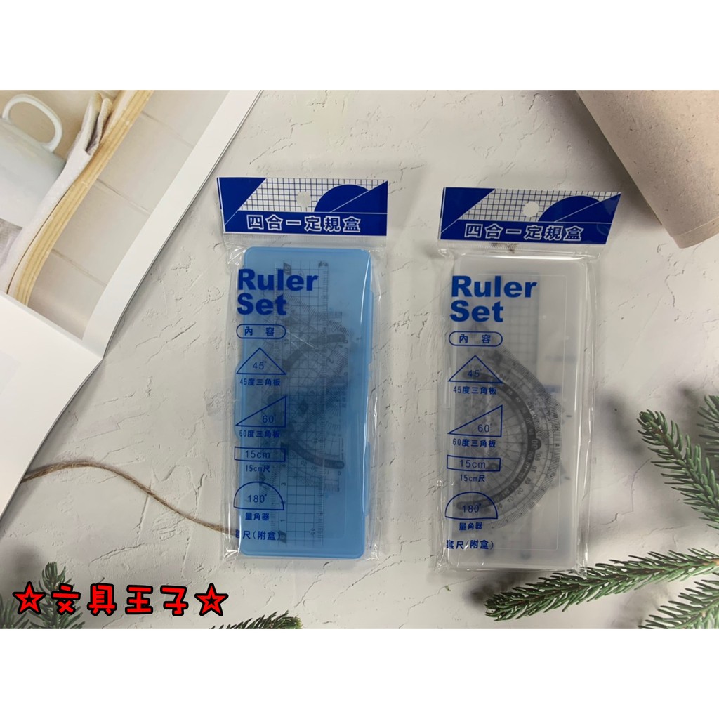 • 四合一定規盒.學生尺組/直尺.三角板.量角器.套組(塑膠盒裝) HA402